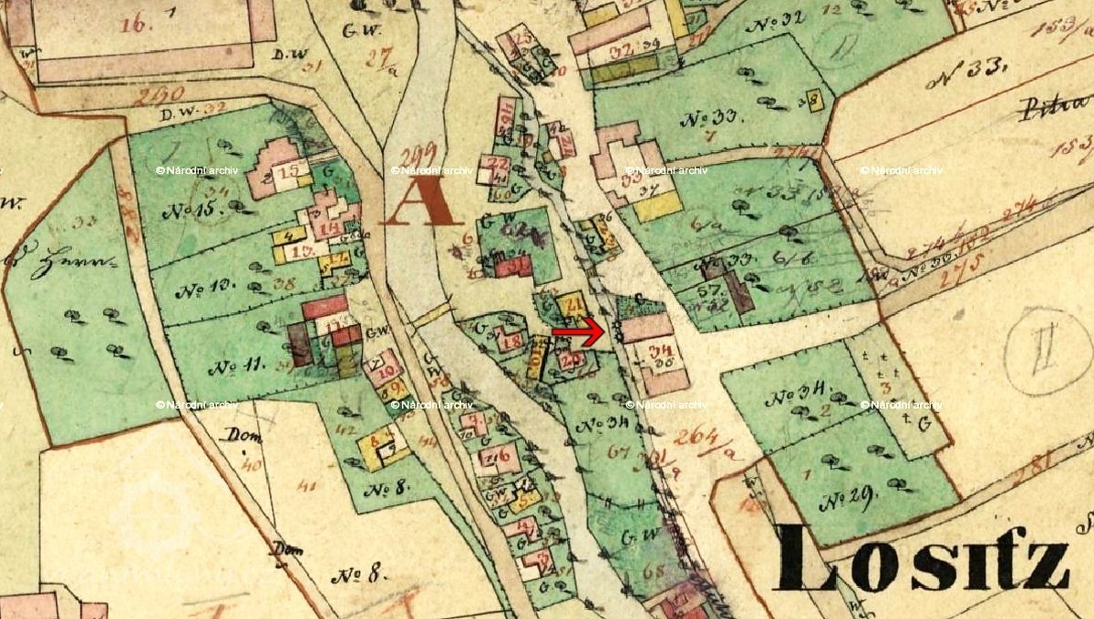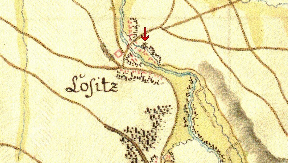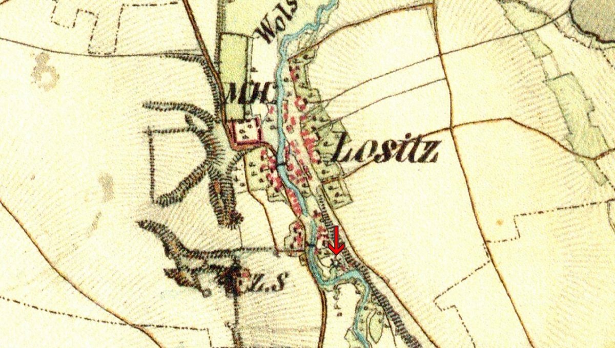 V opuštěném mlýně se ještě v roce 1969 nacházela bohatě zdobená hranice s nápisem "STAWEL ANNO 1763 JOHAN PETER".
