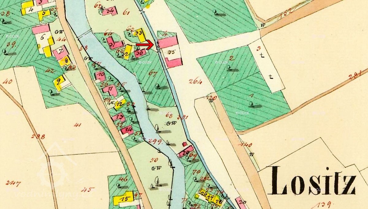 PopisV roce 1930 1 kolo na vrchní vodu; průtok 0,176 m3; spád 2,50 m; výkon 5,0 HP.