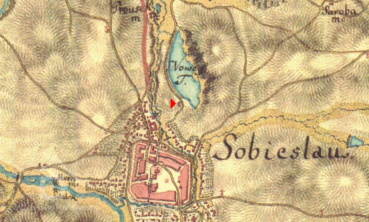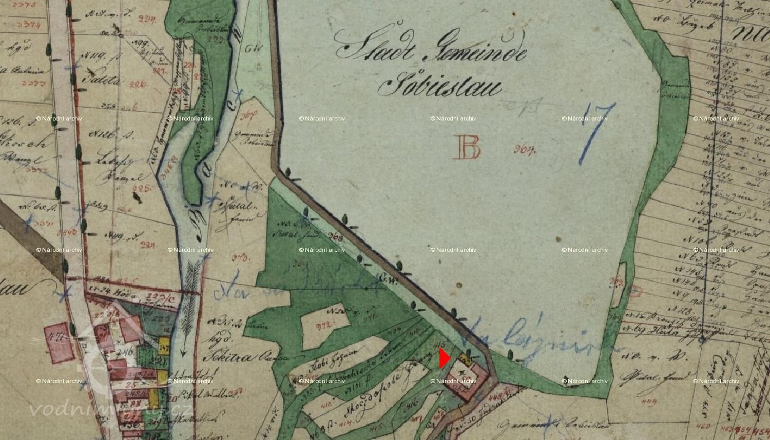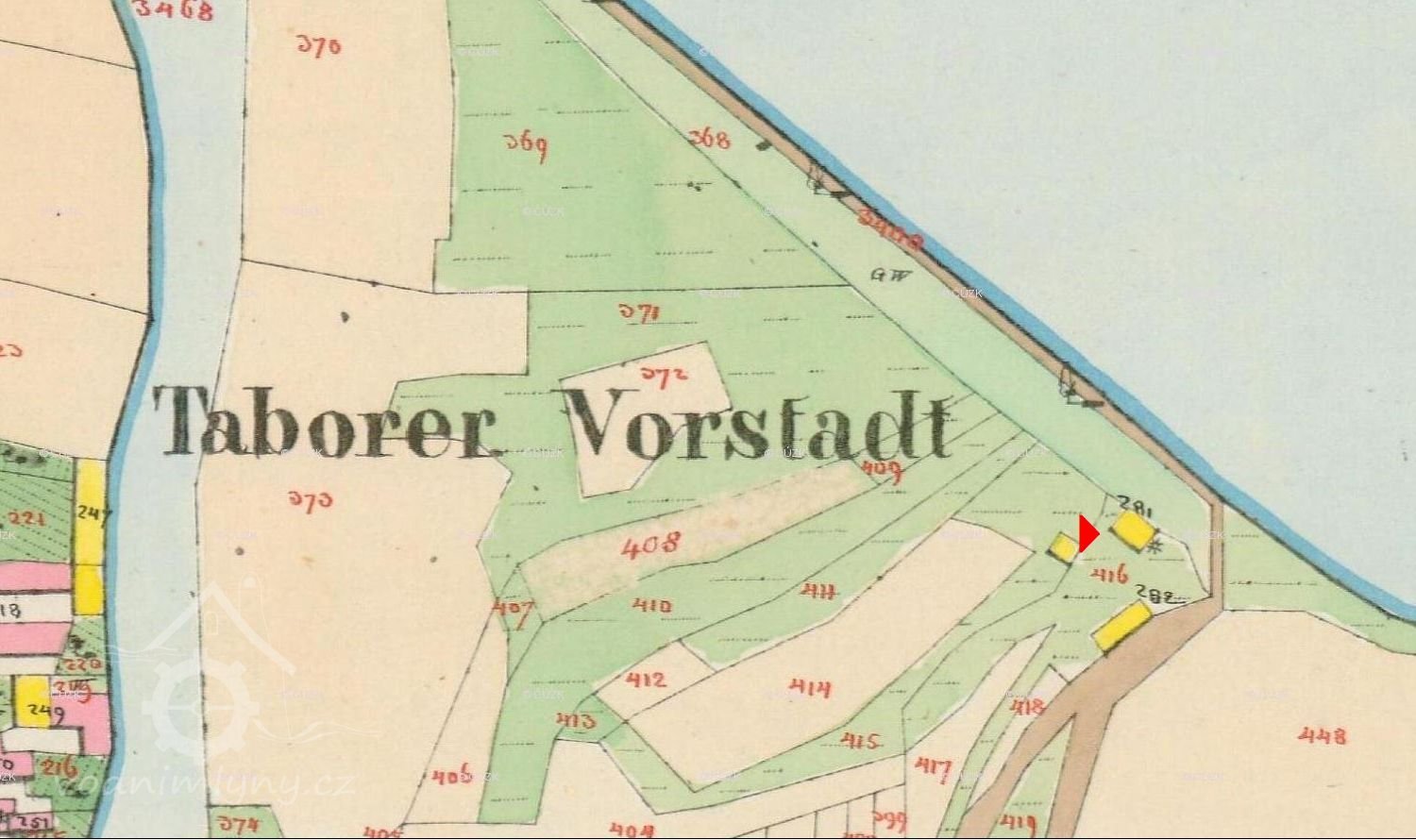 V místech galerie a prodejny krbů a kamen pod hrází Nového rybníka v Soběslavi stál malý mlýn, mlejnek. Více, než mletím se proslavil jako lázně, neboť na dveře mlýna vyvěral železitý pramen. Mlýn se stal věhlasnými lázněmi. Později byl přebudován na tkalcovnu, kde se vyráběly stuhy. Ve Vodní knize I OÚ Tábor, uložené v táborském archivu je o něm zmínka na straně 15.