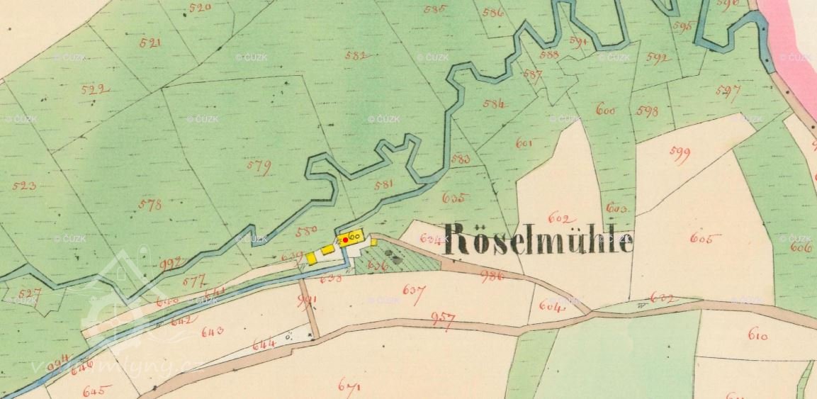 Popis1930: 1 kolo na svrchní vodu, hltnost 0,118 m3/s, spád 6 m, výkon 6,1 HP