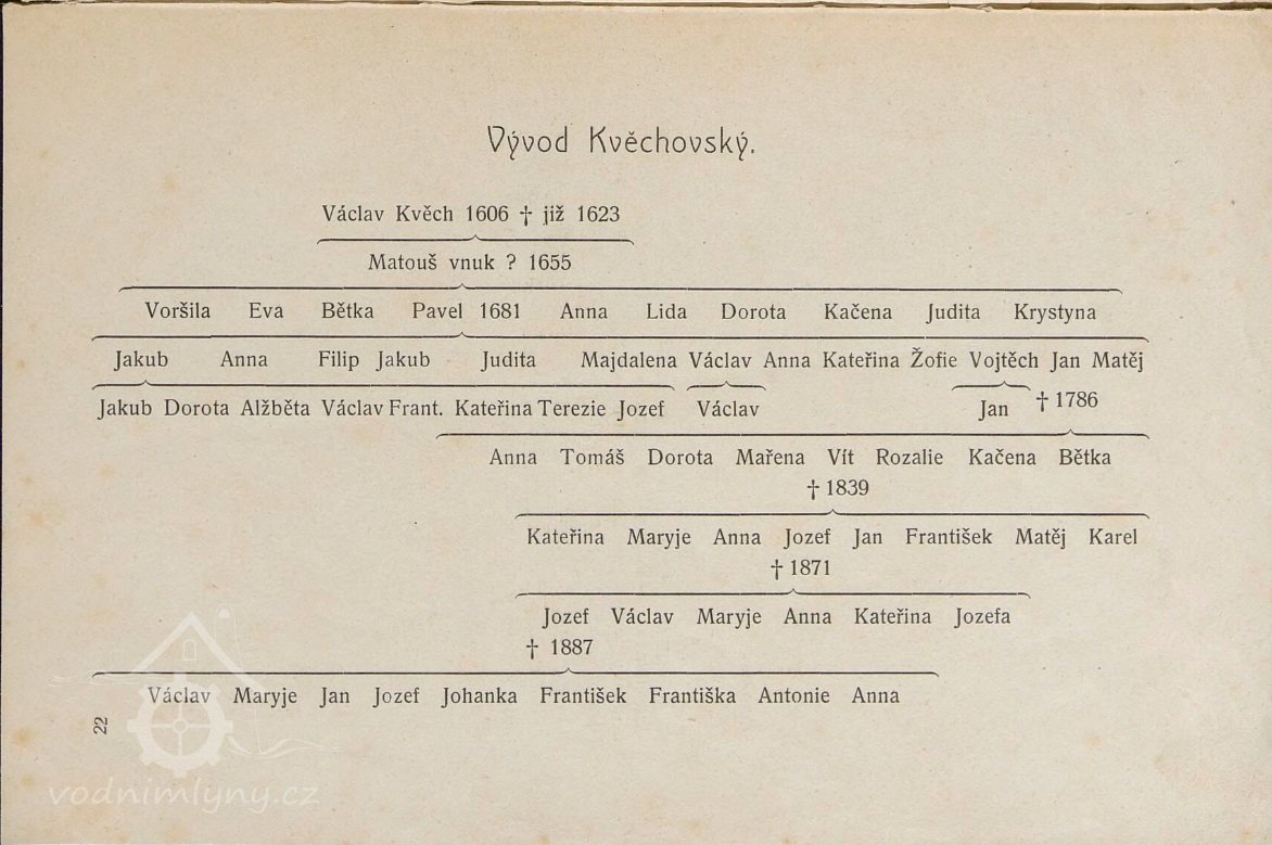 Jan Kvěch (*24.8.1708; +1786) hospodařil r. 1736 na mlýně