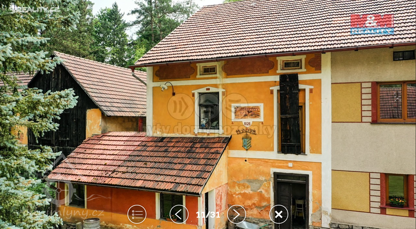 Pěkně dochovaný mlýn s posledními zbytky technologie a pěknou štukovou fasádou.