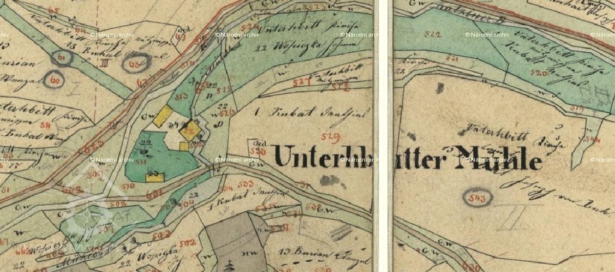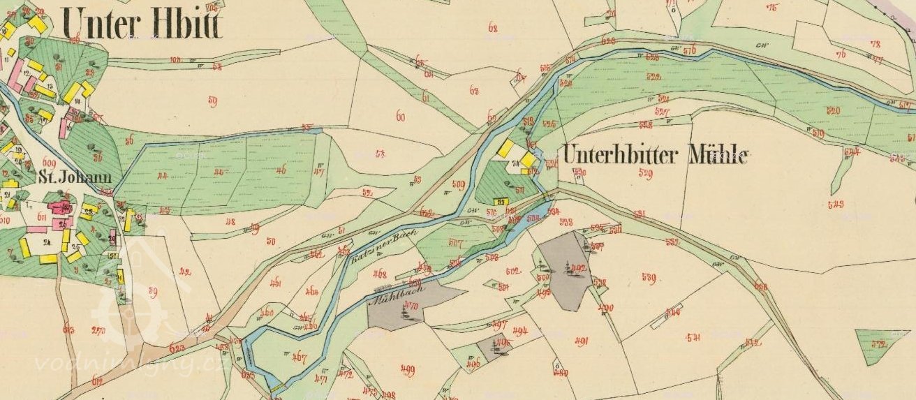 PopisV roce 1930 bylo u mlýna 1 vodní kolo na svrchní vodu o hltnosti 97 l/s, na spádu 4,2 m, o výkonu 3,53 HP.