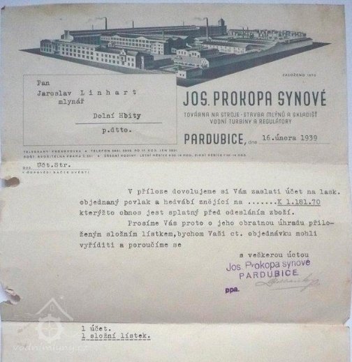 PopisV roce 1930 1 kolo na svrchní vodu o hltnosti 54 l/s, na spádu 5,4 m a výkonu 2,51 HP