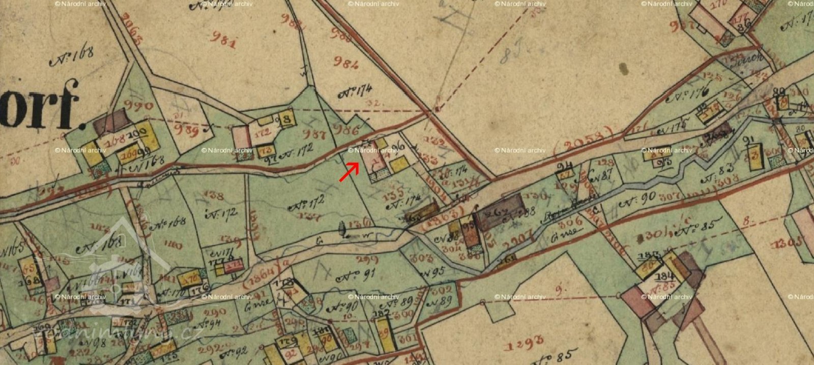 Kolem statku č.p.172 vede náhon k dnes již neexistujícímu mlýnu, patřícímu Franzi Dimterovi, který provozoval v těchto místech i pilu na vodní pohon. Pokud by se pila dochovala do dnešních dnů, byla by jistě technickou památkou první kategorie. Pila měla vynikající katr se spodním pohonem kola, které mělo v průměru neuvěřitelných 6 metrů a bylo jistě největším vodním kolem široko daleko. Kolo bylo zapuštěno do země, a proto tedy spodní pohon, znatelný hlubokým korytem potoka u silnice. Voda odtud byla vedena dodnes existujícím dva a půl metru vysokým pískovcovým tunelem, vedoucím pod silnicí. In:Bergmann, Broumovsko