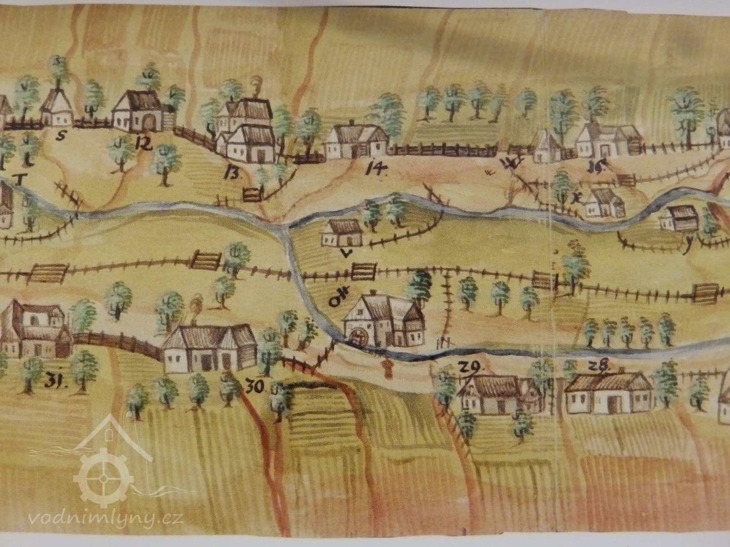 Horní mlýn v Martínkovicích, zakreslený již na mapě v Hesseliově urbáři z roku 1676.
