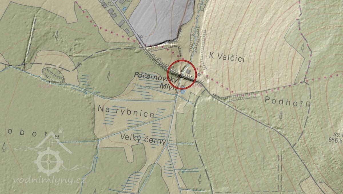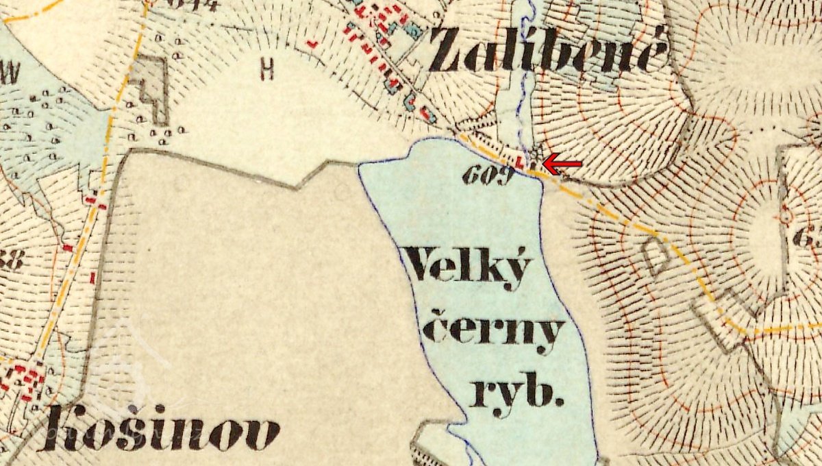 Mlýn a pila se nacházely pod hrází zrušeného rybníka Velký Černý. Obě zařízení jsou známa od 18. století a pracovala do 70. let 19. století. Po zrušení rybníka byl mlýn upraven na hájenku, zbořenou v roce 1958.