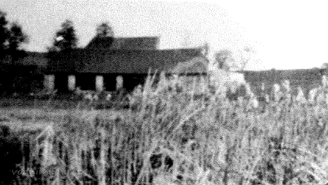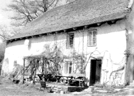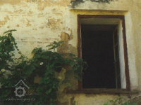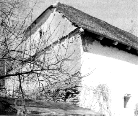a na štítové zdi zašlý rumělkou psaný nápis,