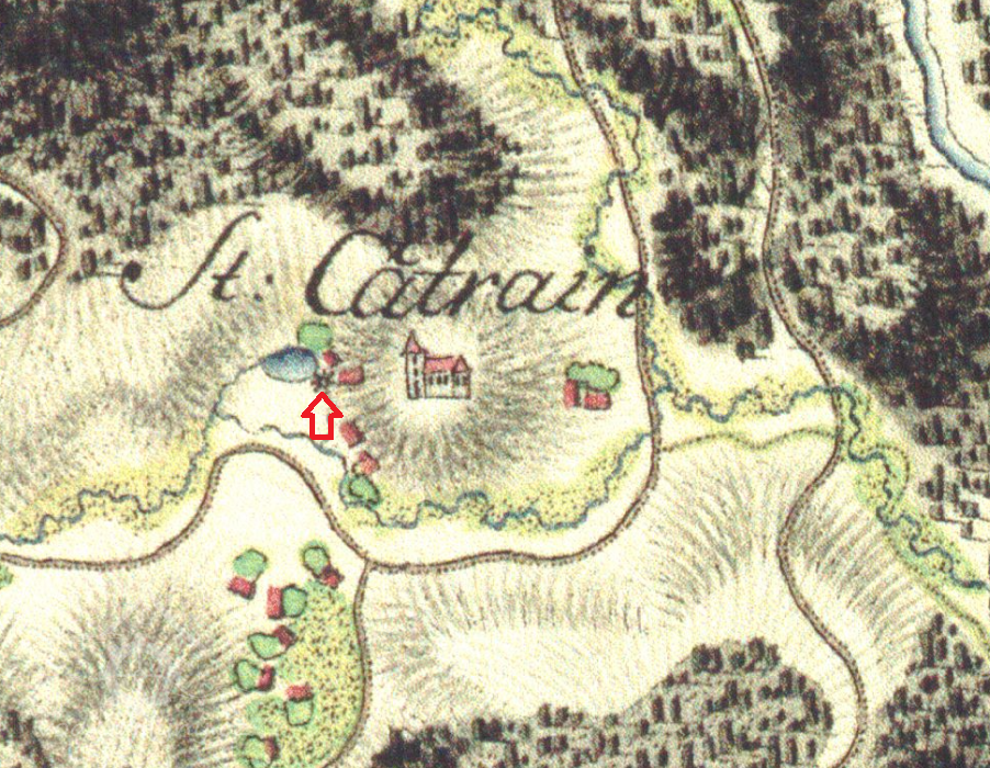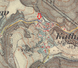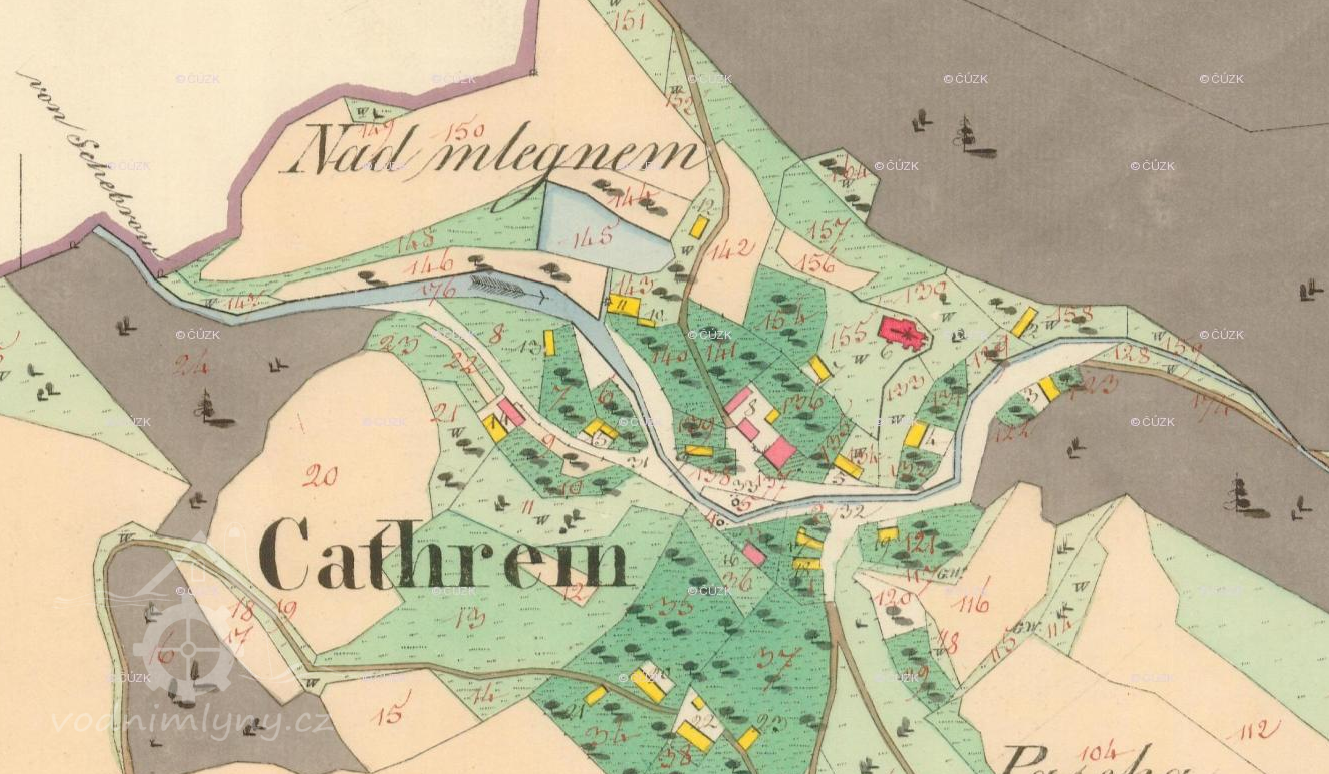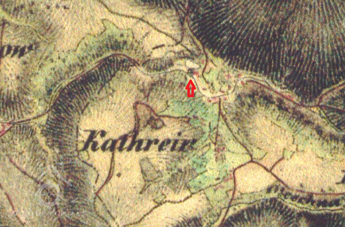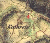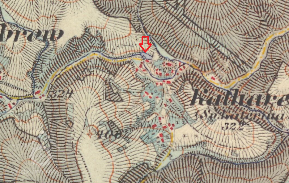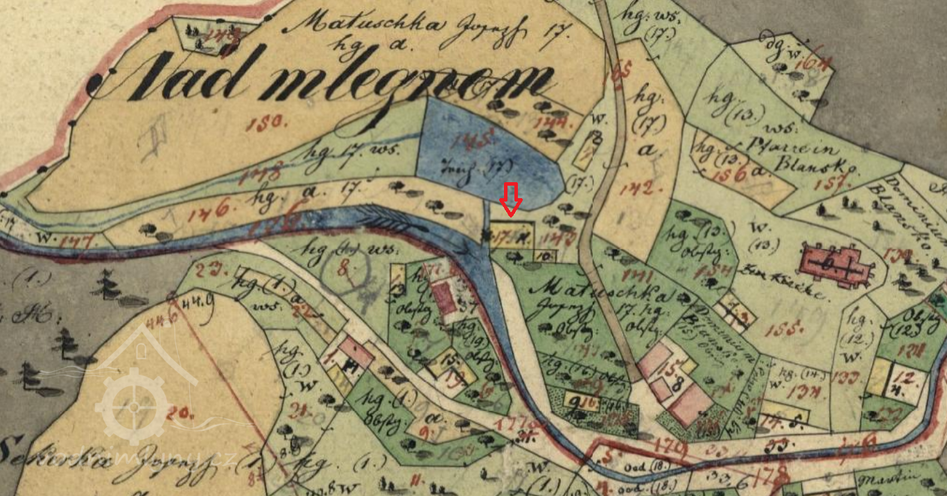 Mlýn dohledán na mapách I. vojenského mapování. (JV)