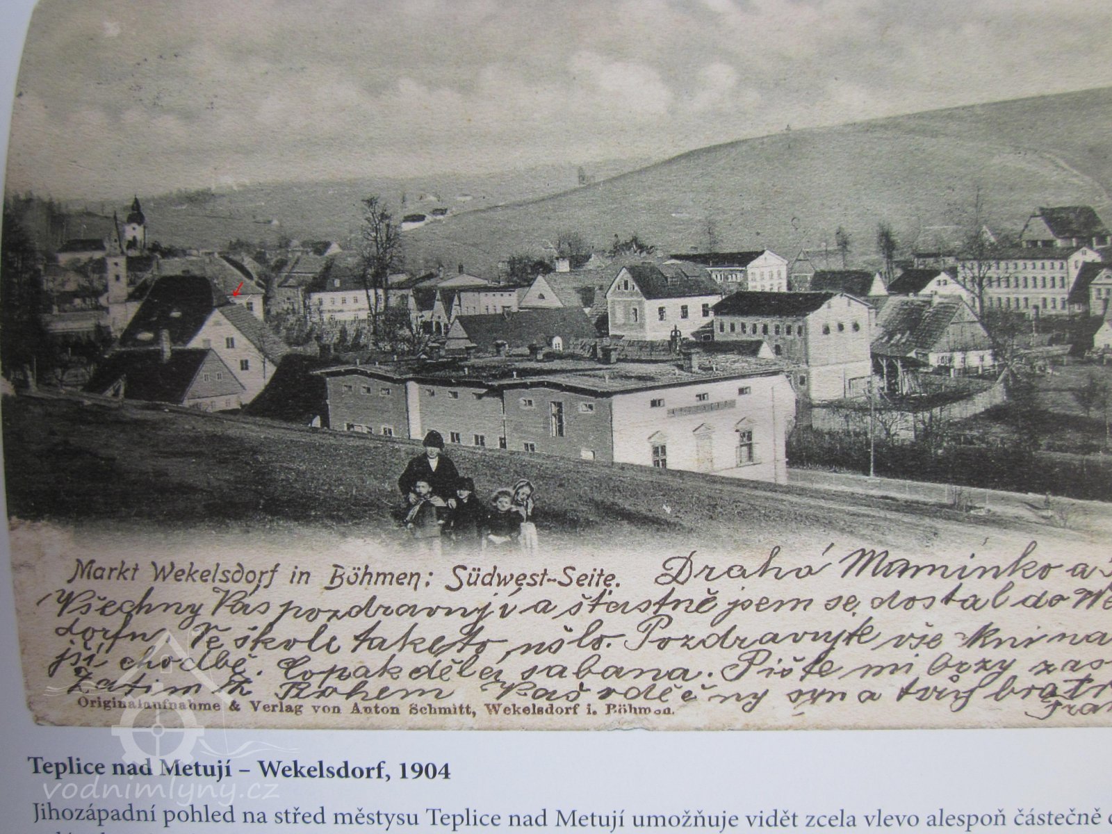 Na náhonu z Metuje v Teplicích n.M. stál na p.č.st.21 mlýn čp.25, patřící k Dolnímu zámku /je připomínán již r.1615/. Budova je ještě zachycena na leteckém snímkování v r. 1953. Mlýn byl zbourán v 70. letech minulého století při asanaci centra města.