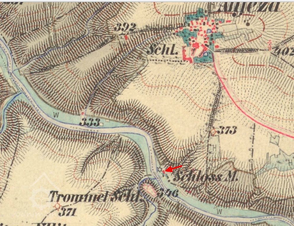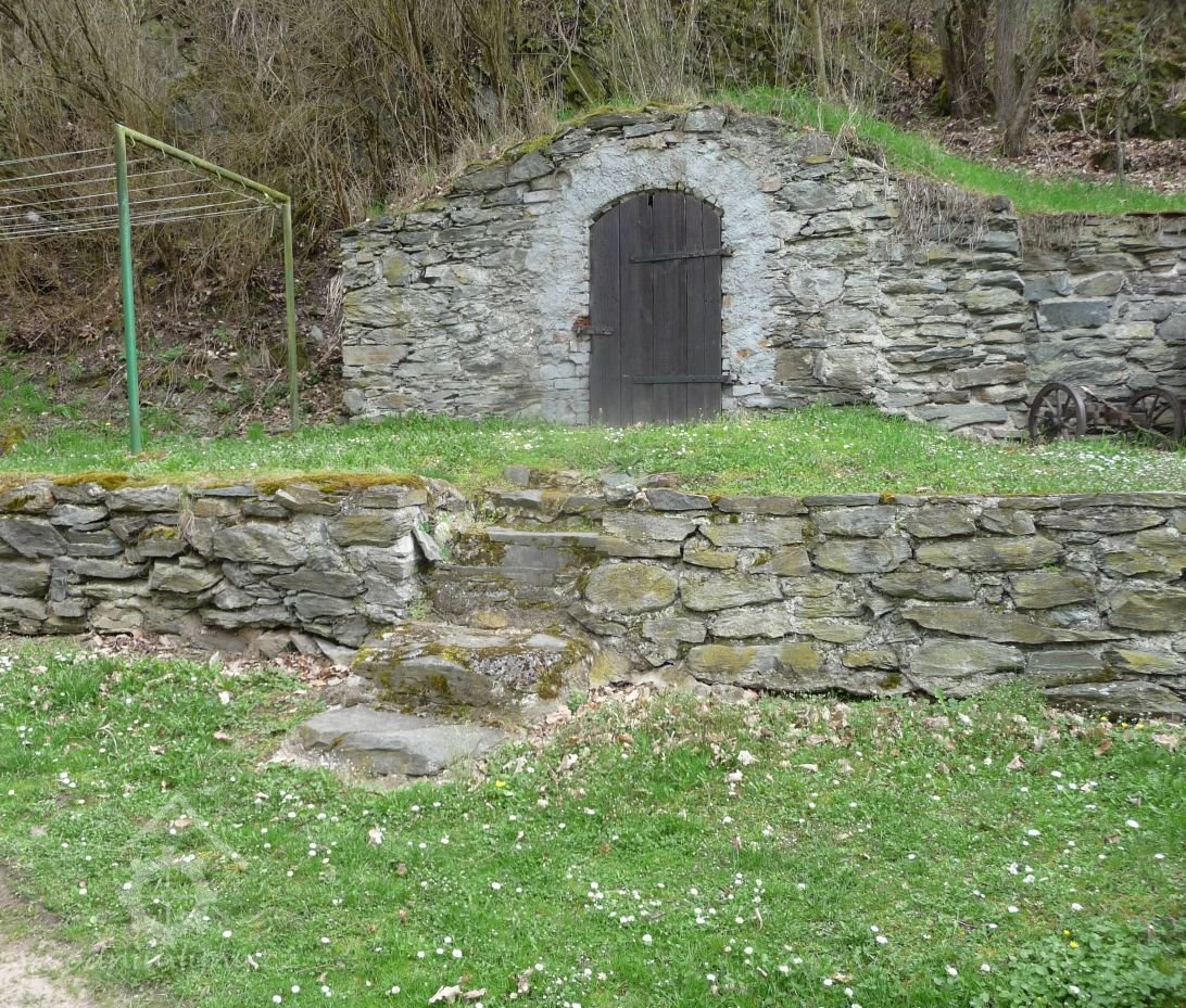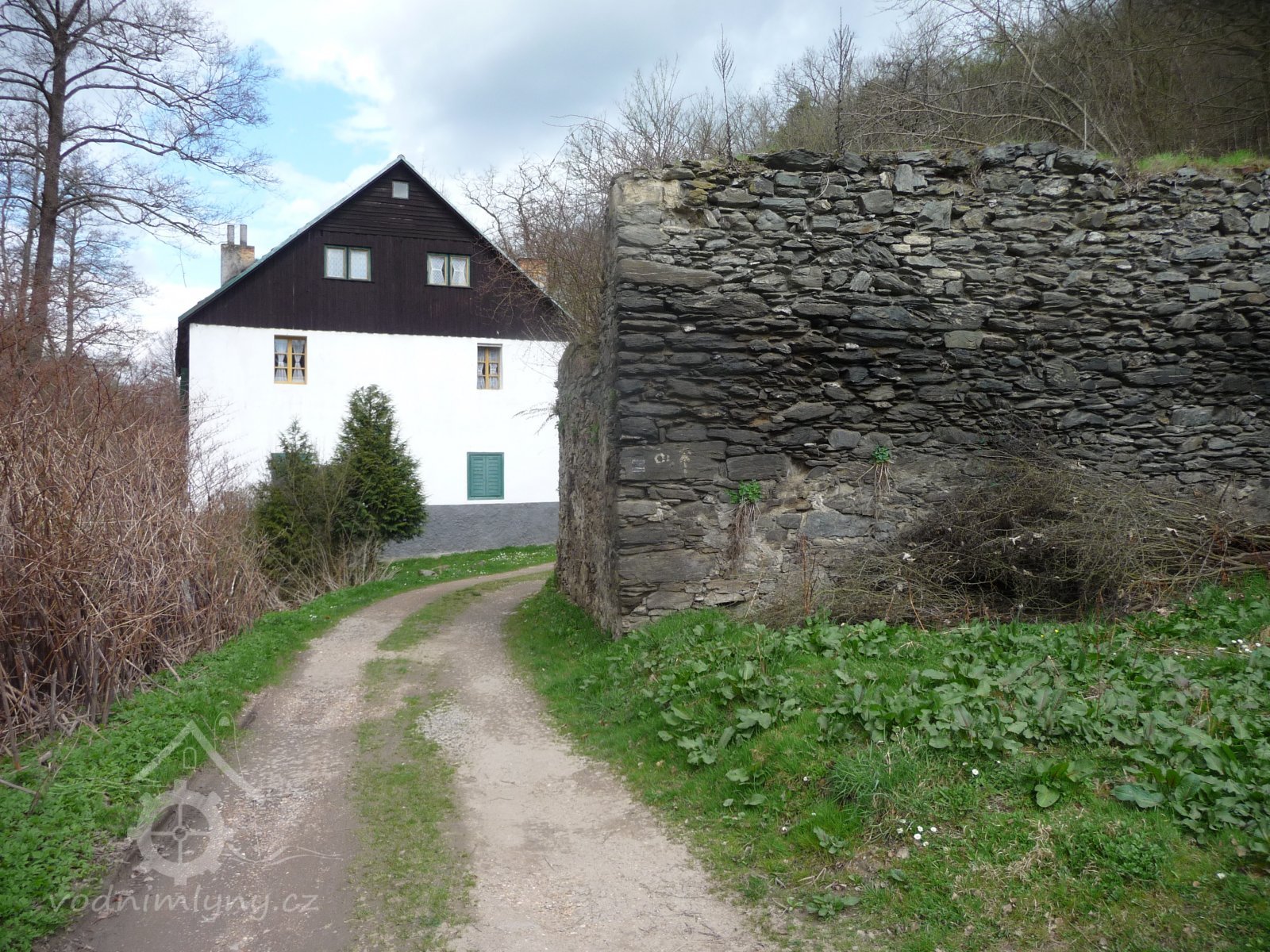 U mlýna pod srázem jsou zbytky další kamenné budovy a sklípek ve skále.