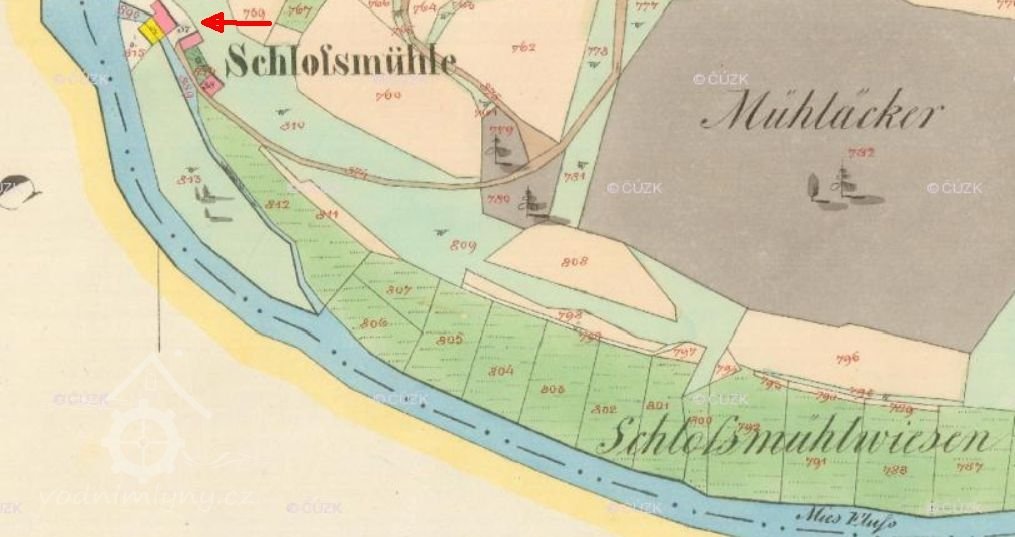PopisV roce 1930 měl mlýn 1 kolo na spodní vodu, spád 1,5 m, výkon 7 HP.