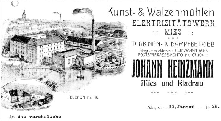 V roce 1930 byl majitelem mlýna a elektrárny Jan Heinzmann.