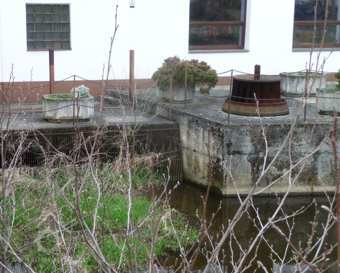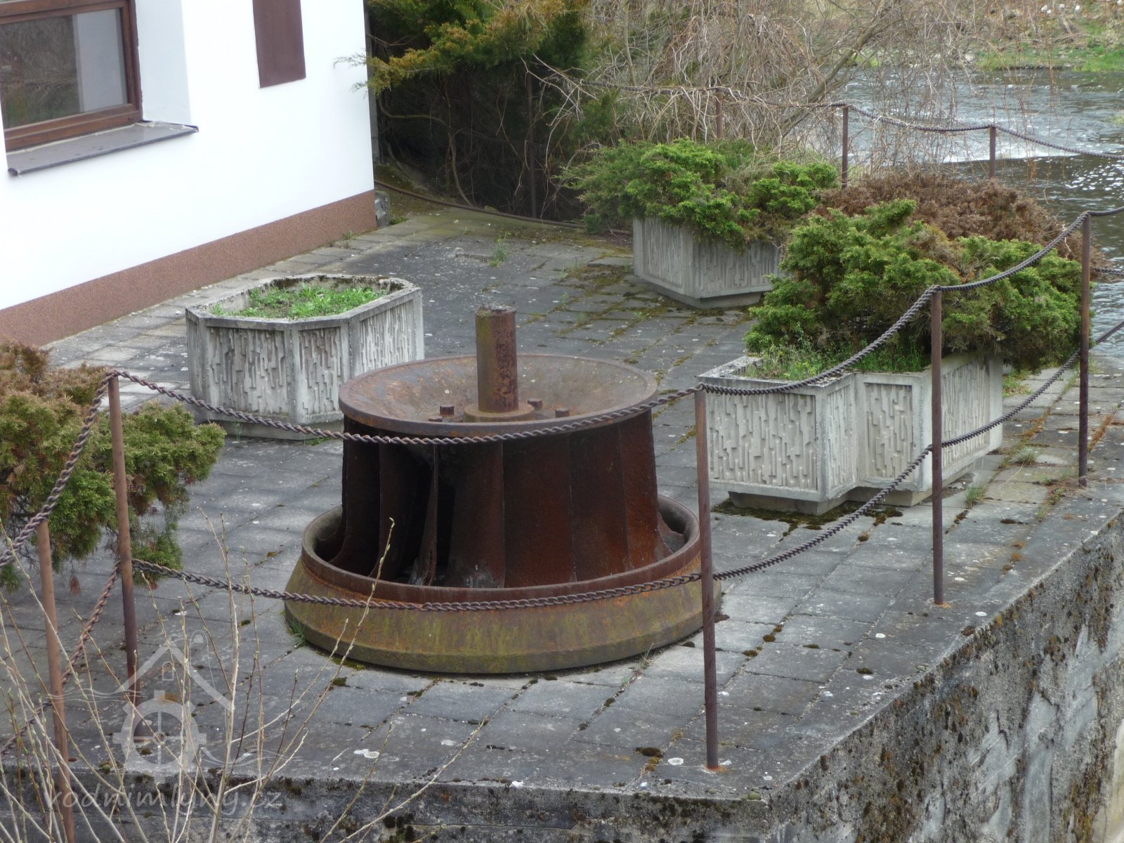 Před mlýnem je uložena stará Francisova turbína