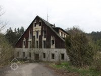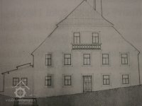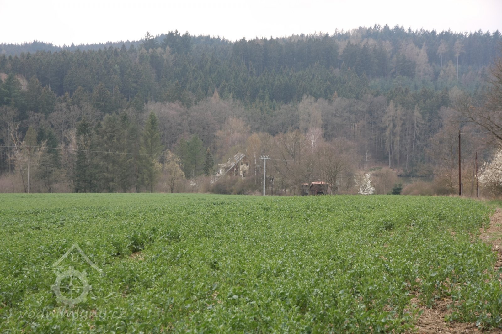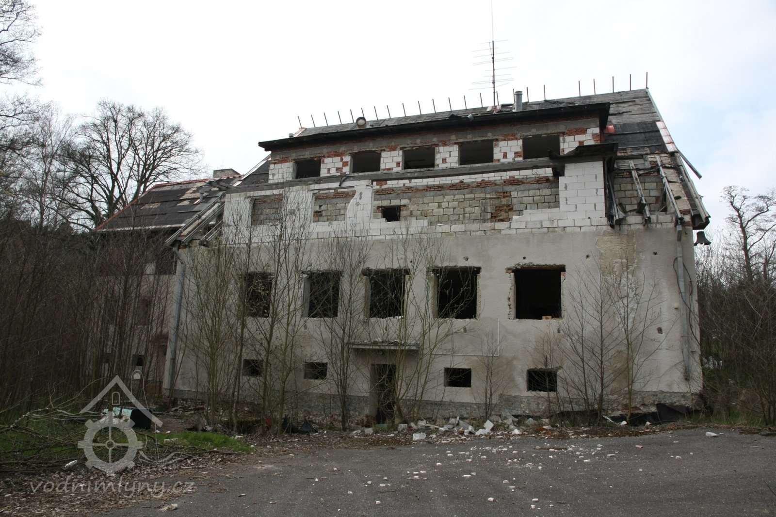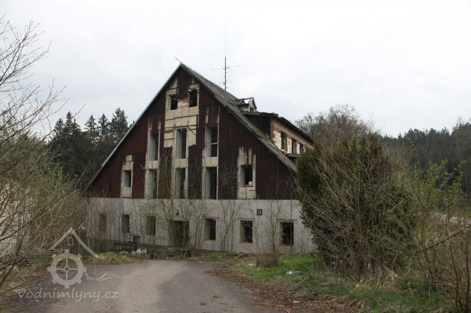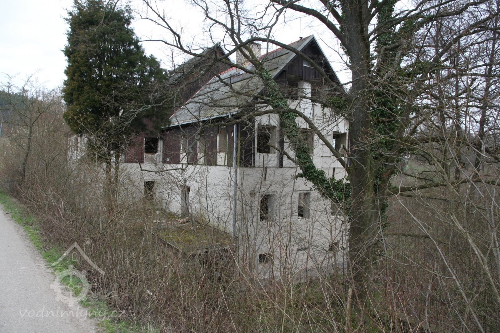 Nevkusná, chátrající novostavba na místě bývalého mlýna.