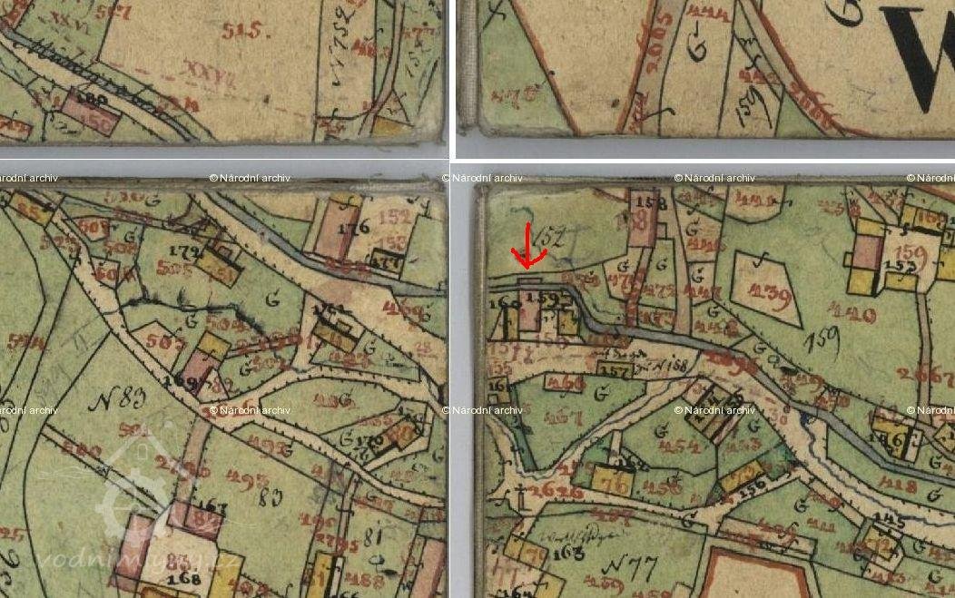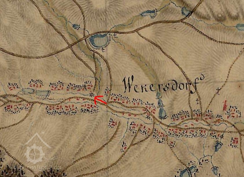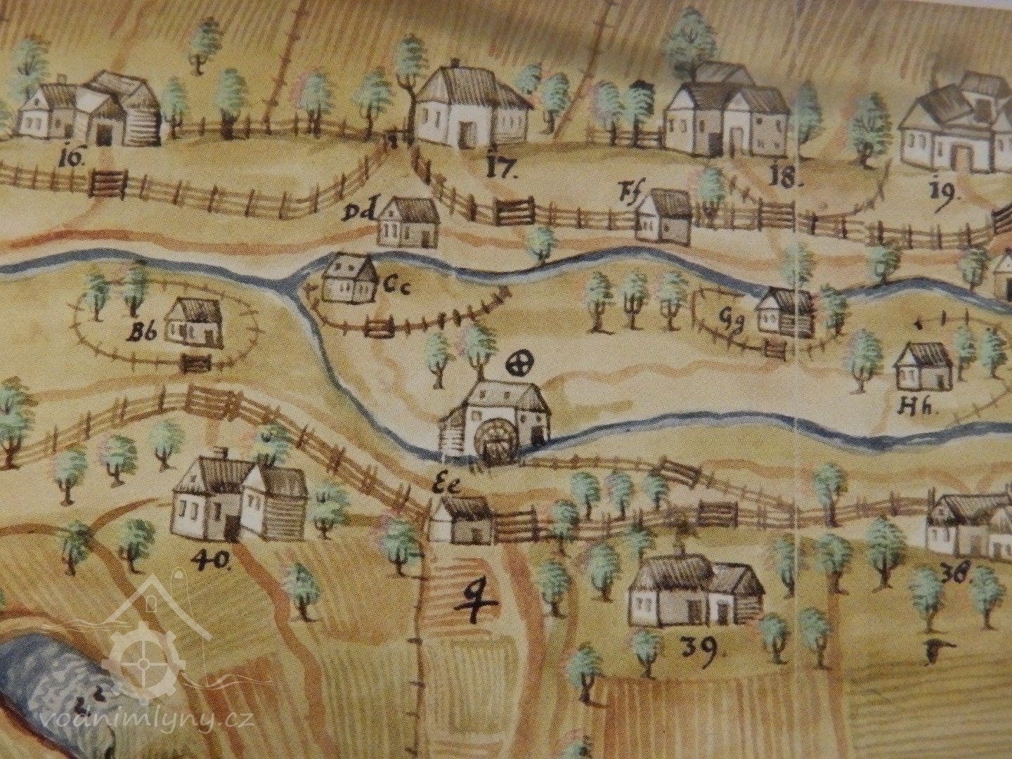 1676 Hesseliův urbář: broumovský opat  Thomas odkoupil stavení od Elise Volckeho  za 50 kop a zbudoval z něj mlýn s jedním složením.