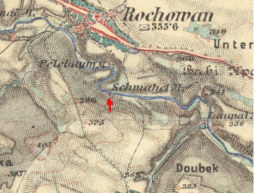 Na mapě z roku 1876 je uveden název Schmahelův mlýn podle tehdejšího mlynáře Gratiána Šmahela, po něm zůstal na mlýně František Šmahel.
