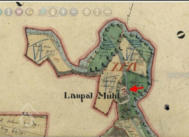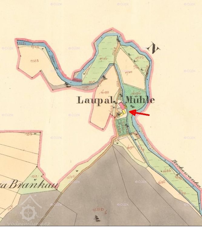 1876 uveden jako Loupalův mlýn (také na turistické mapě z let 1995-98)