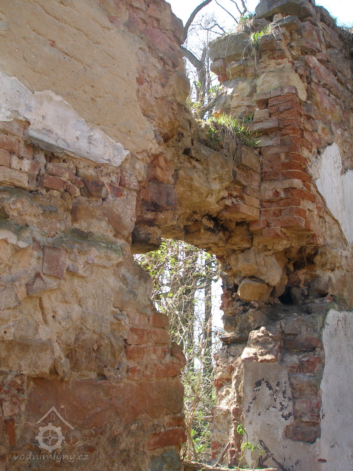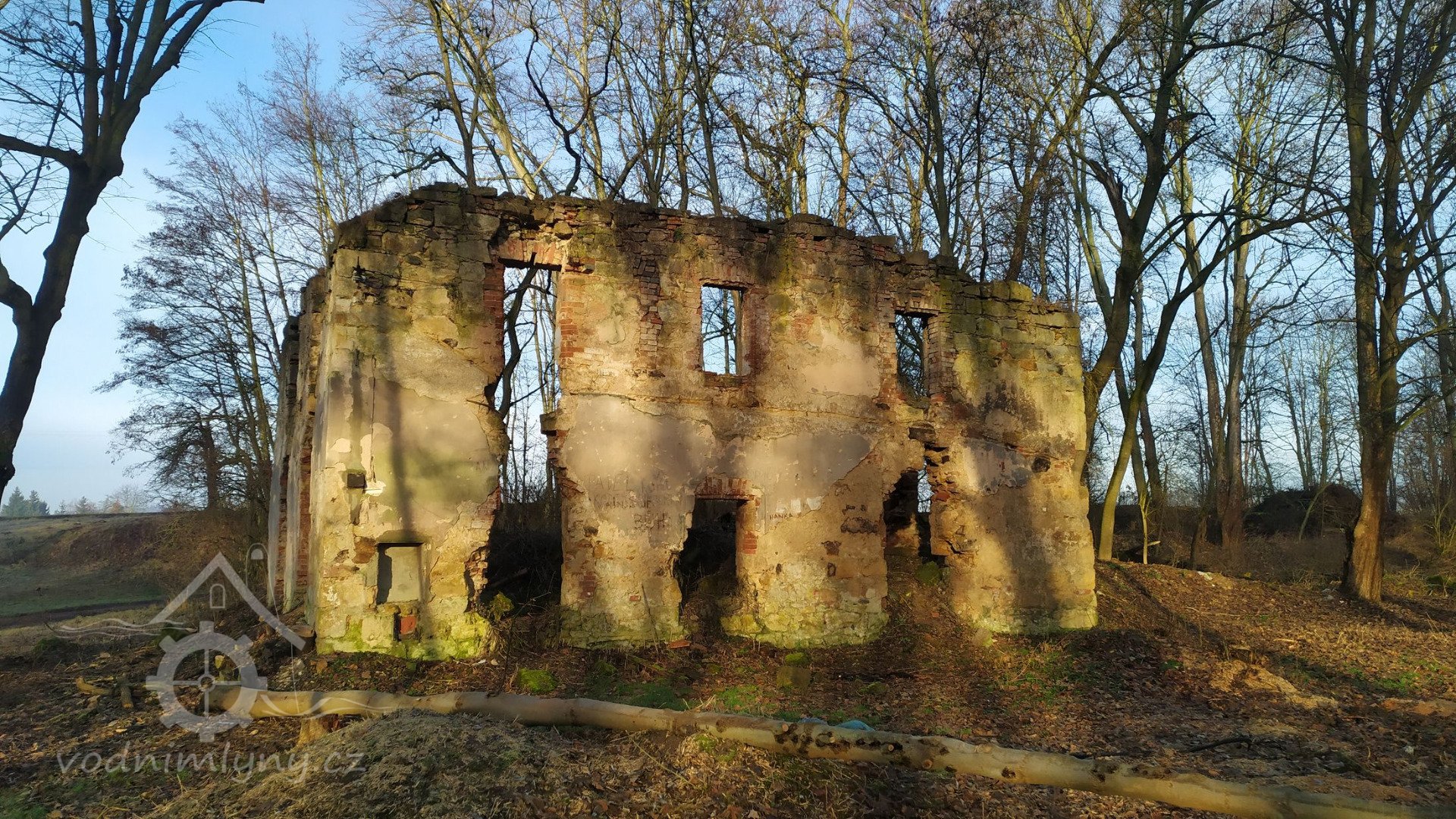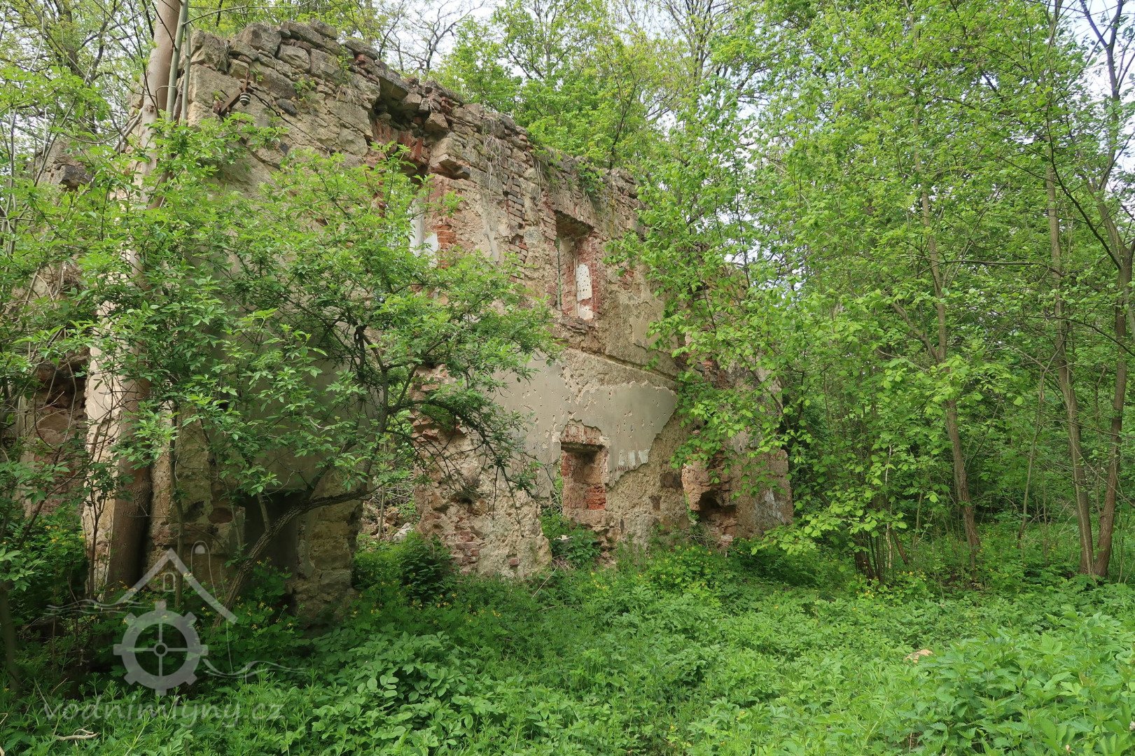 Zbytky mlýna stojí u křižovatky polních cest z Kbelnice, Sedliček a Jičína. Z mlýna zbyly obvodové zdi do výše 1. patra.