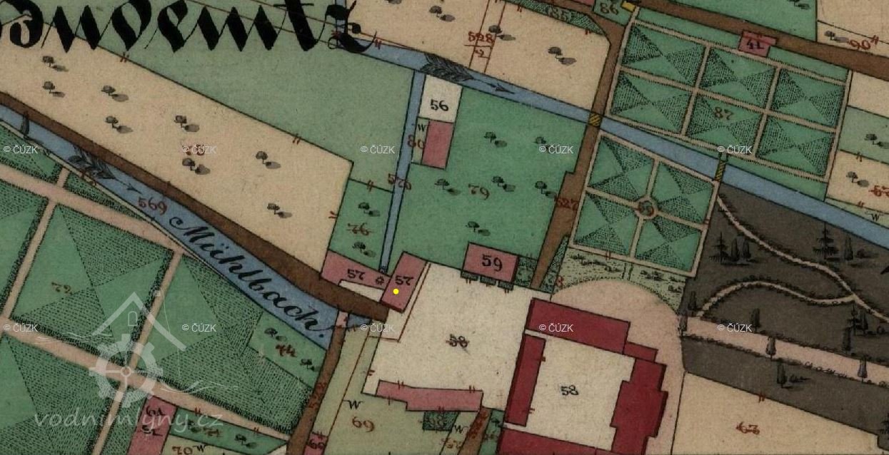 V roce 1930 měl mlýn 1 kolo na vrchní vodu, hltnost 0,132 m3/s, spád 5,35 m, výkon 6,16 HP.