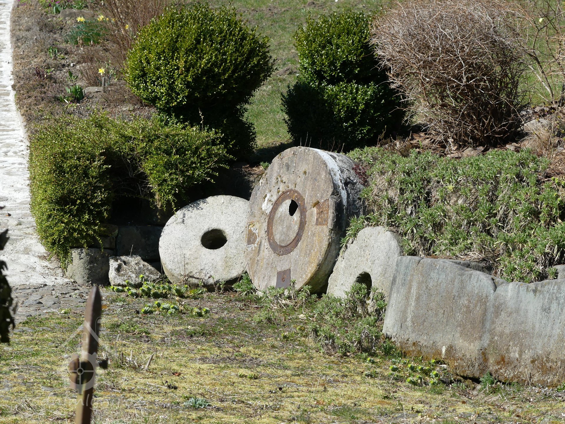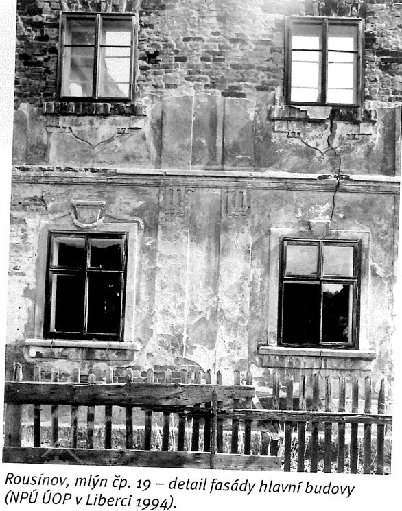 Normováno 1874 - železná skoba s nápisem "A.K. 1874" (Anton Kluttig) usazena do pískovcového zdiva při sv rohu mlýnice.
