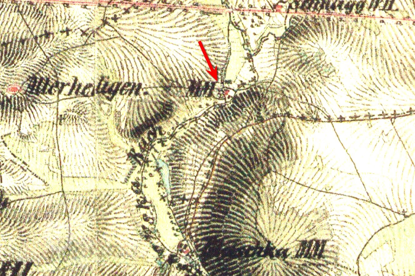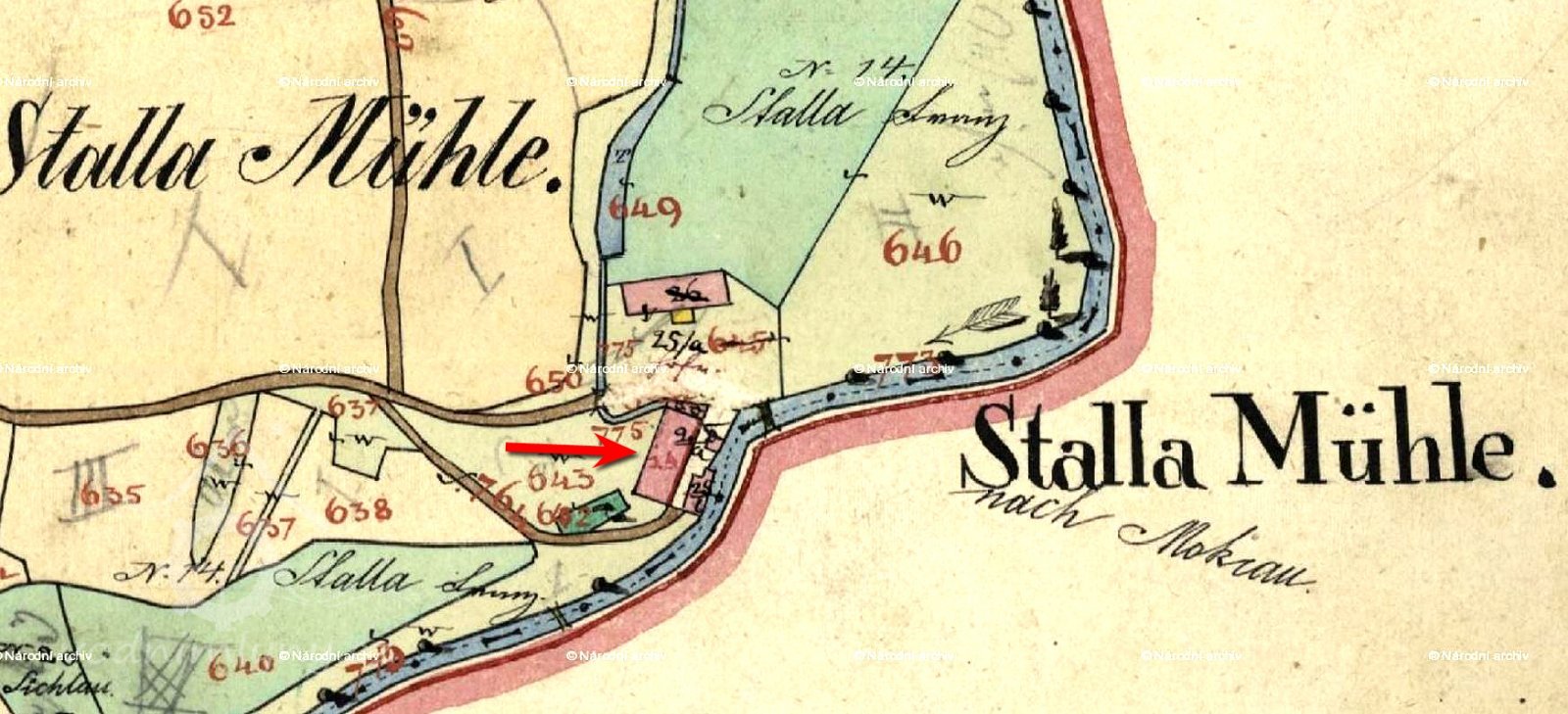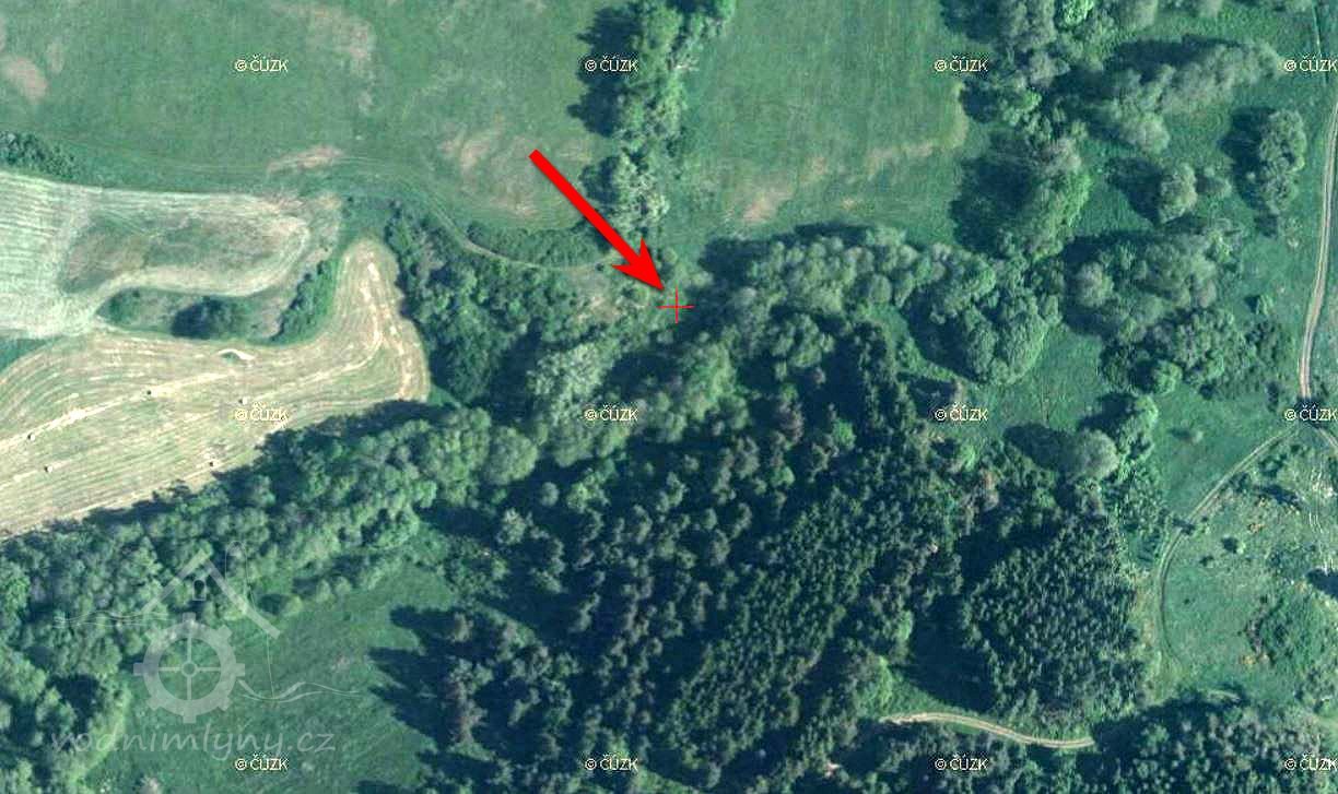 Mlýn se nacházel asi 1300 m SV od centra obce Štoutov.