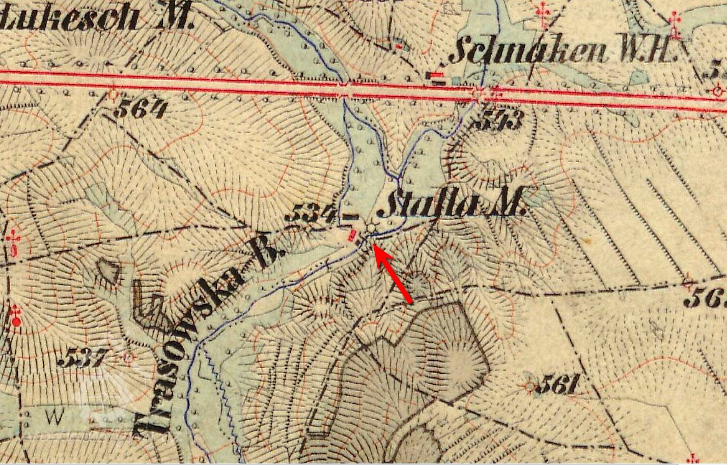 Zaniklý mlýn u potoka Velká Trasovka v katastru obce Štoutov (část obce Čichalov), ležící při jižním okraji Doupovských hor. Mlýn stál ještě v 50. letech minulého století, dnes jsou na mlýništi již jen ruiny.