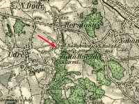 Dnes již zaniklý mlýn stával pod hrází velkého rybníka, jižně od obce Herstošice na Bochovsku. Je patrný ještě na letecké mapě z 50. let minulého století.