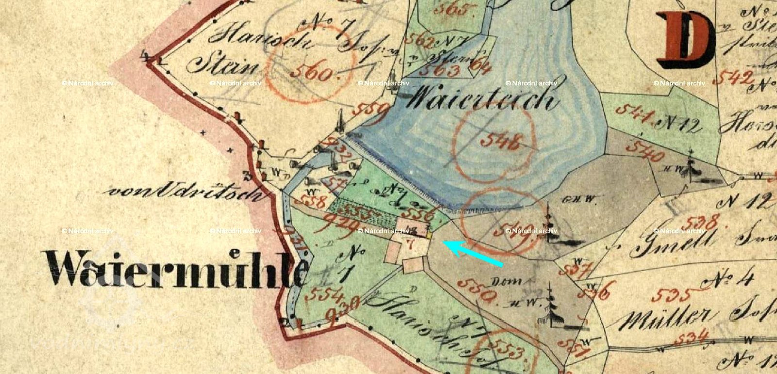 Mlýn Na Rybníce, Weiherův, Kuželův mlýn; Waiermühle, Weihermühle