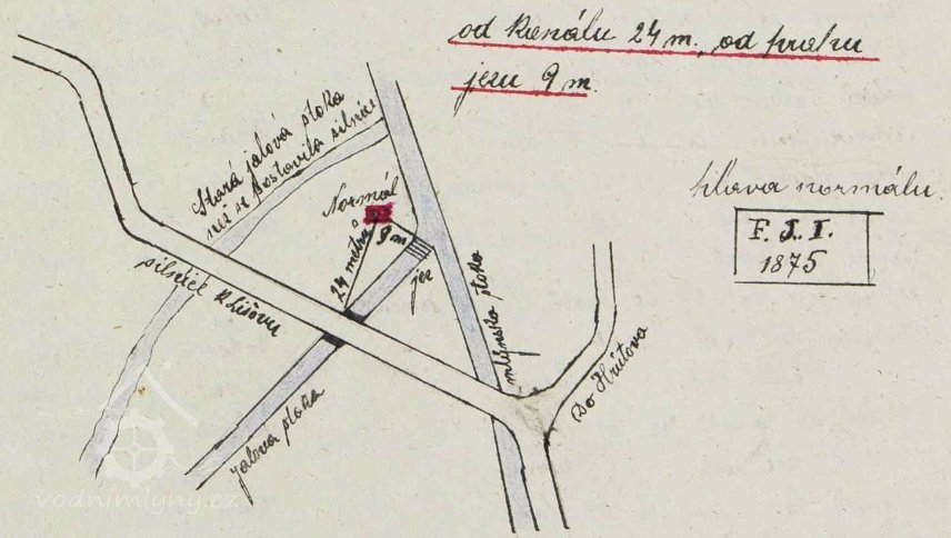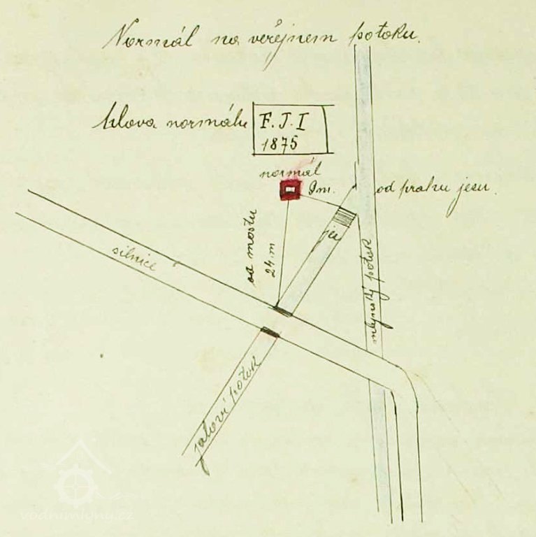K založení normálu došlo při stavbě silnice a to z důvodu, aby mlynář nemohl hnát více vody na mlýn než je normál, prah jezu je v rovnosti normálu.