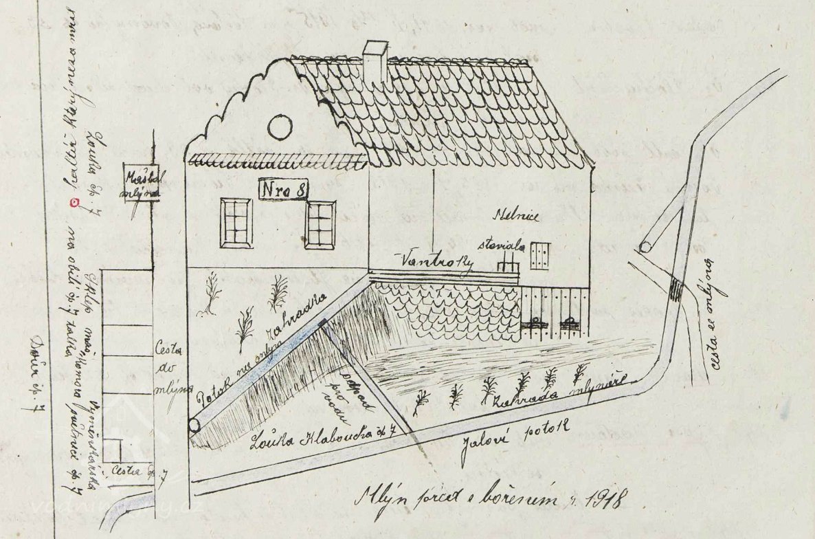 Mlynář Vojtěch Vacl měl věčně spory z obcí, za tou příčinou držel si paušálně advokáta Dr. Píchu z Budějovic za 60 zl. ročně, chtěl vynutit na obci aby mohl zvýšit normál který je založen za kanálem měří od kanálu 24 m, od prahu jen 9 m.