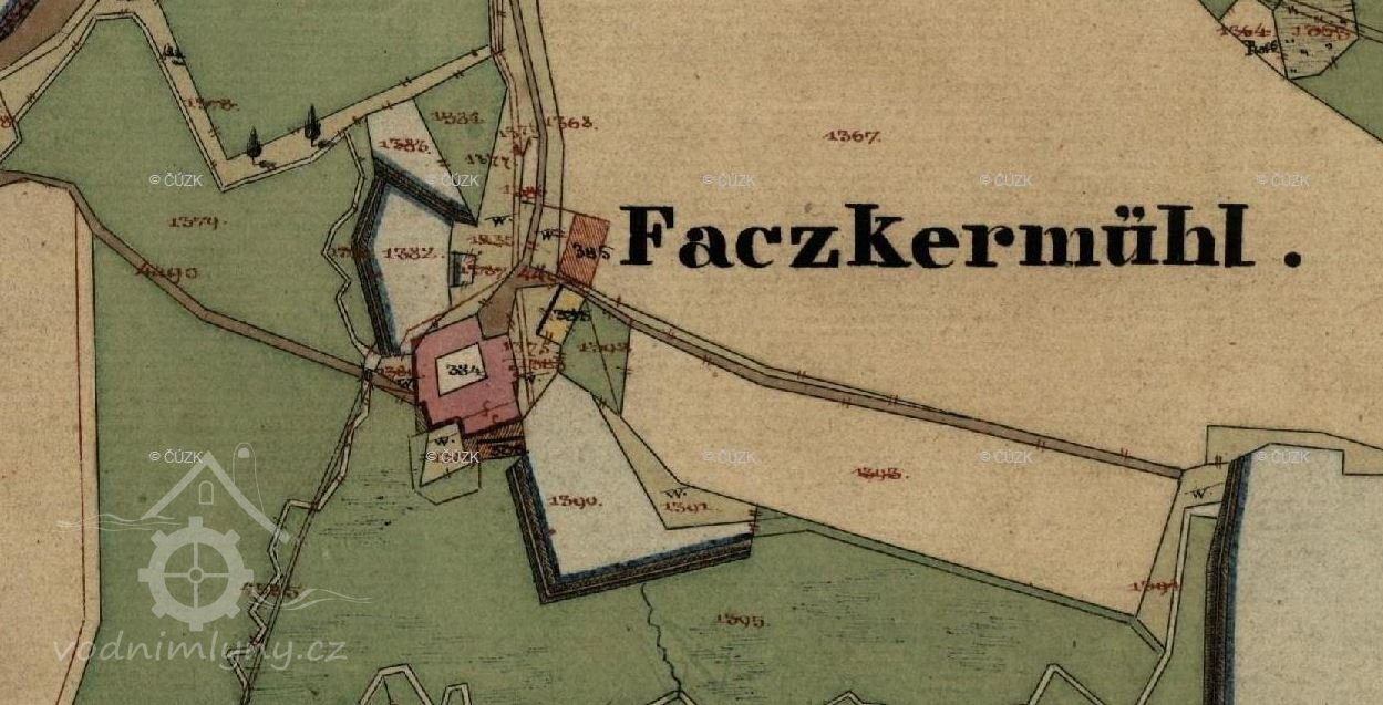 Mlýn má velmi starý původ. Zapsán byl již kolem roku 1562 jako mlýn Turkův u nového obecního rybníku Šťastnovského (nyní Smrškův) darovaného již před tím roku 1559 obci Jáchymem z Hradce. Rod Fáčků je uváděn v berní rule z roku 1654 v souvislosti s placením daně. Fáčkové zde mleli více než 200 let. Roku 1880 byl mlýn přestavěn na sídlo, které se vrátilo roku 1999 zpět majitelům a bylo rekonstruováno do současné podoby. Pila u mlýna byla již za Fáčků, ale byla později přestavěna a přistavěna pletárna. Vodní kola byla nahrazena Francisovou turbínu, která hnala již jen pilu a pletárnu.