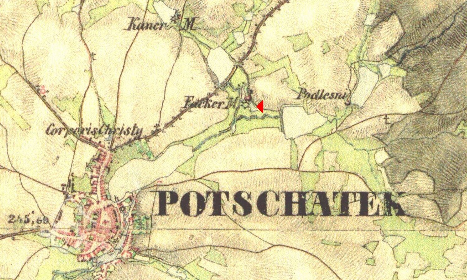 1562 Turkův mlýn u nového obecního rybníka Šťastnovského, zřízeného na louce Pijavičníku a darovaného 1559 Jáchymem z Hradce obci