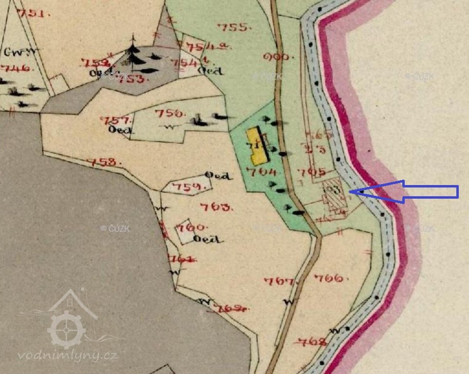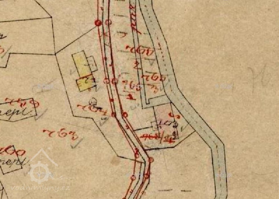Popis1930: 1 kolo na svrchní vodu, hltnost 1,14 m3/s, spád 3,9 m, výkon 3,56 HP