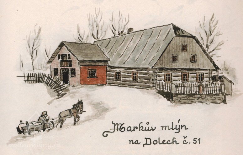 Nejmladší mlýn na Zlatém potoce, založený 1854, malebná roubená stavba. Býval proslulý pečeným chlebem, zároveň zde bývala i trafika. Mlel až do roku 1946, dnes slouží rekreaci.