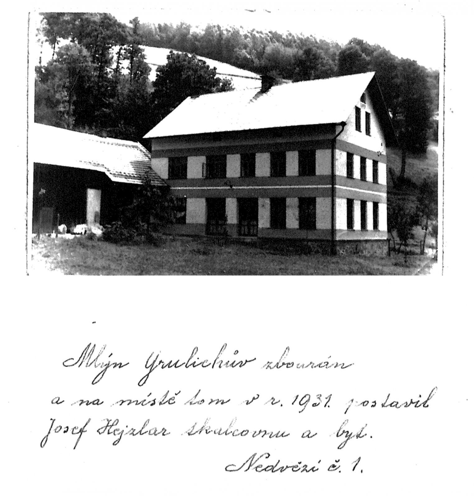 1929 zpustlý mlýn zdědil zeť Adolfa Grulicha Josef Hejzlar z Rozkoše čp. 20 (zvaný Hejzlar - Podnikatel)), nechal jej zbořit a vybudoval  zde 1931 tkalcovnu pro 12 stavů, které sem přestěhoval z Bystrého čp. 72.