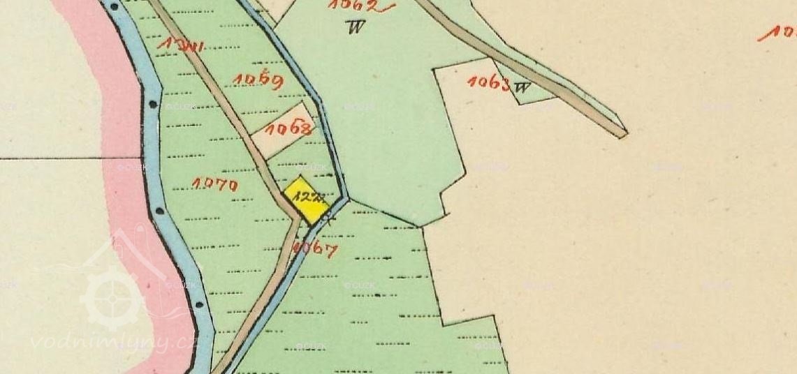 1654 v Berní rule uveden mlejnek o jednom kole, majitel Kryštof Pola, příslušenství 3 strychy pozemků