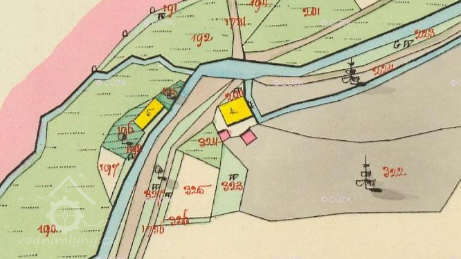 1930 (tkalcovna): 1 kolo na svrchní vodu, hltnost 0,79 m3/s, spád 5,05 m, výkon 3,46 HP