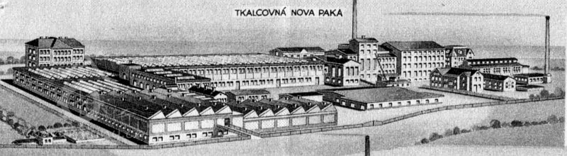 Obchodník a také hudební skladatel Karel Záhorský (1820–1895) vyráběl od roku 1845 v budově na novopackém náměstí čp. 8 cikorku a úspěšně ji prodával v balení s českými vlasteneckými veršíky. Roku 1850 zakoupil budovu tzv. Šibeňáckého mlýna čp. 266, přestavěl ji a začal zde vyrábět ve velkém nejen kávové náhražky, ale také asfaltovou střešní lepenku z odpadů papírny v Hostinném. Roku 1862 postavil na vedlejším pozemku první novopackou továrnu – tkalcovnu lnu čp. 268 s vlastní apreturou, barevnou a šlichtovnou, vybavenou 156 tzv. regulatorními stavy, které zakoupil od Vincence Mastného z Lomnice nad Popelkou. Budovu vyprojektoval stavitel Franz Wolf (1832–1918), který do Nové Paky přišel při své práci pro železnici roku 1857. V roce 1882 Záhorský závod pronajal a poté roku 1887 prodal Gottliebu Schnabelovi (1854–1921), obchodníku z Nového Bydžova. Ten se v Pace usadil a někdejší mlýn čp. 266 přestavěl na obytný dům v tzv. švýcarském stylu. Od roku 1892 rozšiřoval provoz tkalcovny – šedový sál pro tkaní bavlny na šesti stovkách mechanických stavů provedl královédvorský stavitel Robert Herkner na parcele 742/1, tato část továrny však byla zbořena roku 2006. Z téže stavební fáze pochází také dobře dochovaný dům čp. 431, postavený po roce 1884 pro generálního ředitele podniku Ernsta Tischera. Další šedový sál směrem na jih na parcele 742/5 byl postaven podle projektu švýcarské kanceláře Séquin & Knobel z prosince 1906, dnes je přestavěn na trojici hal. Další velkou investicí byla stavba přádelny bavlny za železničním nádražím. Roku 1912 byla ještě přikoupena budova čp. 264, původně přádelna lnu, již postavil v letech 1875–1884 Ezechiel Fischl a později zde Ignaz Laux provozoval výrobu motouzů. Dědicové podniku Zdenko Hans Schnabel (1902–1928) a Franz Schnabel (1900–?) po první světové válce plně obnovili provoz, k roku 1924 měla tkalcovna parní stroj o výkonu 800 HP, 1 234 stavů a zaměstnávala 684 lidí, pro něž byla postupně budována rozsáhlá kolonie domků, nazývaná Habeš – dnes ulice 5. května. Novou administrativní budovu čp. 765 u Pivovarské ulice provedl roku 1925 smíchovský stavitel Jan Matoušek podle projektu vídeňské kanceláře architektů Karla Hofmanna (1890–196?) a Felixe Augenfelda (1893–1984), dnes zde sídlí novopacká poliklinika. Třetí šedový sál pro tkalcovnu v západní části areálu provedla roku 1929 firma Pohl & Kutsche, jediný se do dneška dochoval bez stavebních změn.