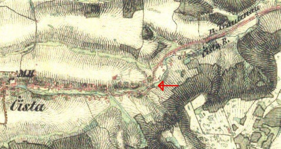 Mlýn v Čisté u Horek je rovněž uveden na II. vojenské mapě z let 1836-1852.