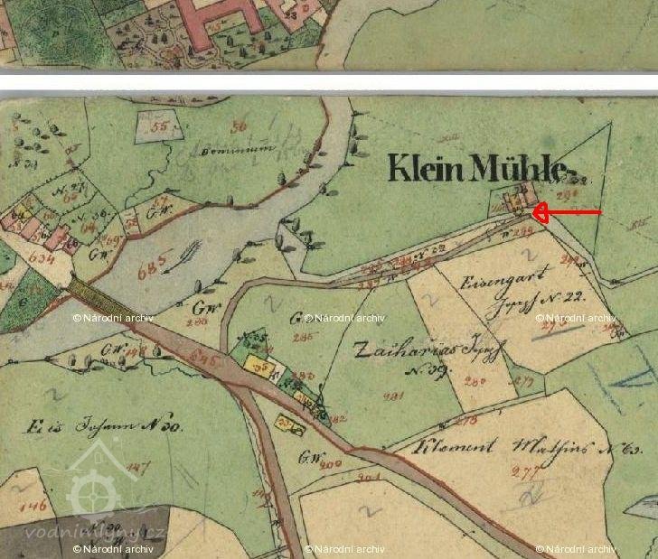Mlýn je zobrazen již na I. vojenském mapování v letech 1764-68, na II. vojenském mapování v letech 1836-52 a na císařském povinném otisku a indikační skice k císařskému otisku z r. 1838 - 52 bez mapové značky mlýna, avšak s náhonem z řeky Sázavy.