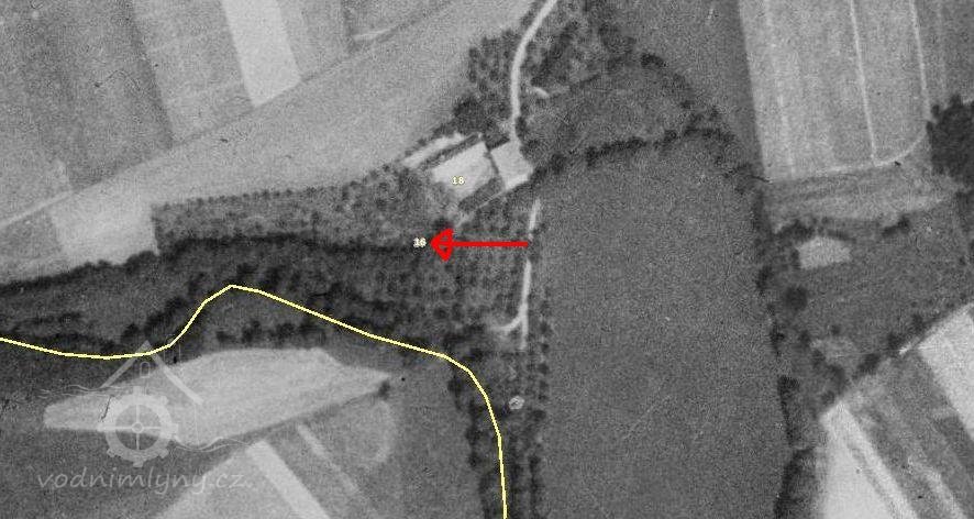 Budova bývalého mlýna na bývalém stavebním pozemku č.37 je v katastru zanesena pod číslem 36/4 jako zemědělská stavba bez čp. Mlýnský rybník, z něhož šla voda náhonem na mlýn, stále existuje, a náhon je vyznačen.