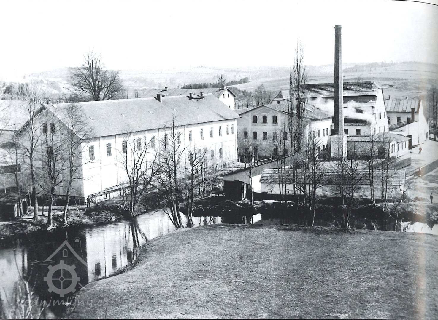 Starodávný mlýn ze 16. stol. původně jmenovaný dle majitelů Hanzalovský nebo také Trkolovský (Drkolovský). V 19. stol. jej Tomáš Halík přestavěl na papírnu, pak krátce jako mlýn, v 70. letech 19. stol. jako rafinerie skla, v r. 1881 bývalý mlýn koupili bratří Stiassní a zřídili zde textilku. Od r. 1942 výroba umělé kůže. Požár v r. 1944 budovy zcela zlikvidoval.
