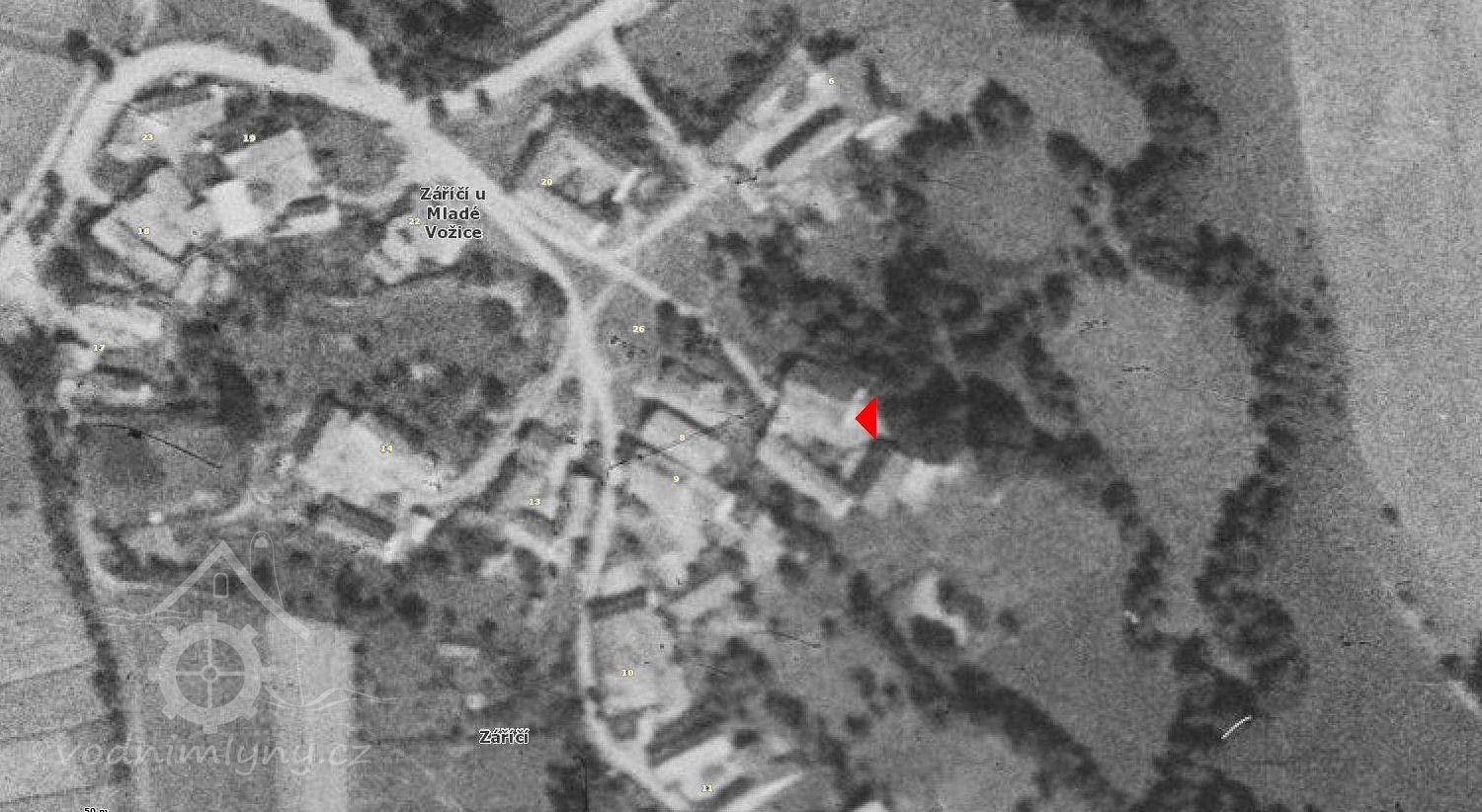 Při hledání mlýna v Záříčí u Mladé Vožice mi přálo štěstí. Potkal jsem mladého muže, který mi ukázal včásti zahrad u jejich domu zbytky zdí, které patřily mlýnu. Mlýn je na mapách I. vojenského mapování, v matrikách je prokazatelně vzpomínán v roce 1658. Mlýn je zapsán ve Vodní knize I Okresního úřadu v Táboře, kde pak je i výměr z roku 1940 o provozu mlýna. Další osudy jsou nejasné. Dnes je v zahradě pouze stěna obytné části s okny.
