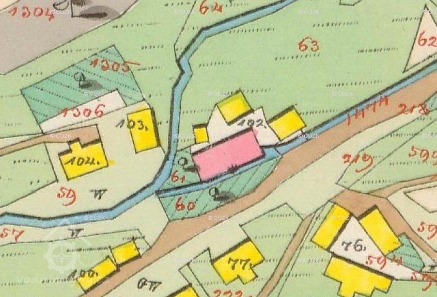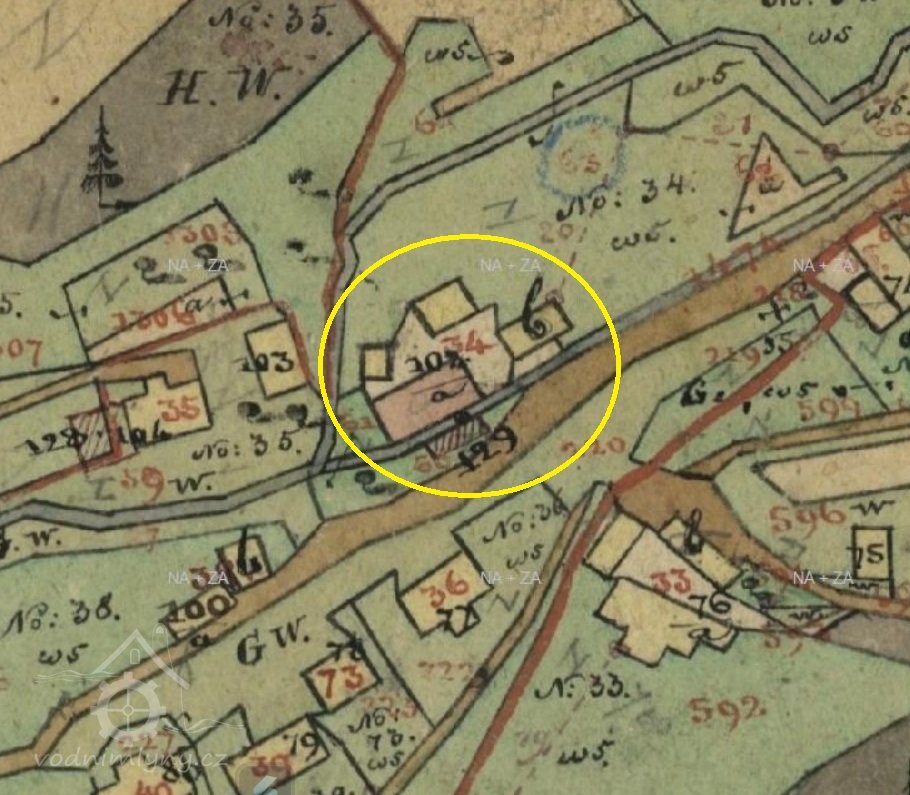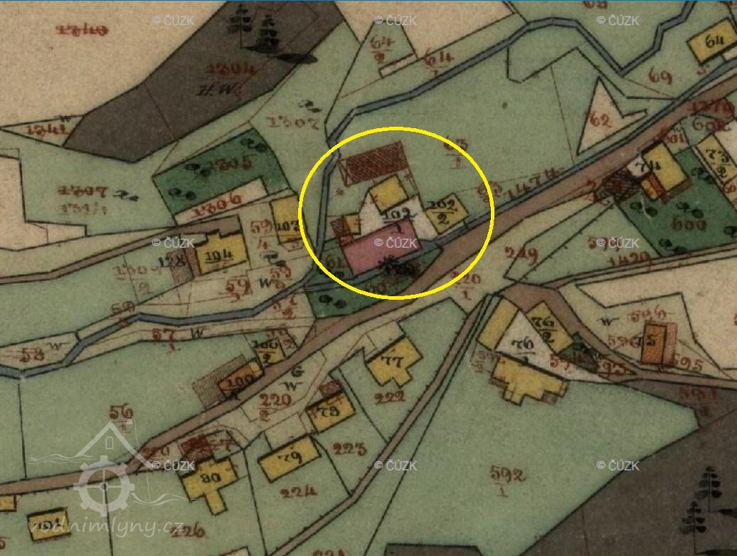 PopisV r. 1930 zde bylo 1 kolo na svrchní vodu, průtok 0,085 m3/s, spád 4,7 m, výkon 3,46 k.
