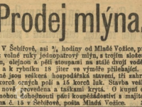 Mlynář Karel Šusta v Šebířově byl odsouzen pro opětovné přijímání obilí k semletí bez mlecích výkazů k pokutě 500 K; obilí bez mlecích výkazů do mlýna dodané bylo zabaveno a mlýn úředně uzavřen.