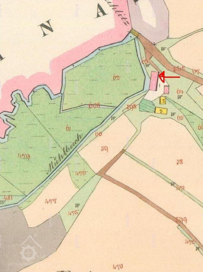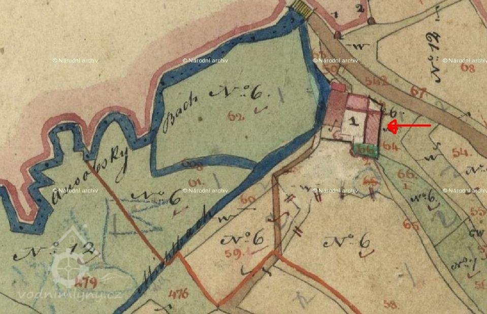 Mlýn je zobrazen na I. i II. vojenském mapování a na císařském otisku a indikační skice; má čp. 6 a p.č.st. 1.
