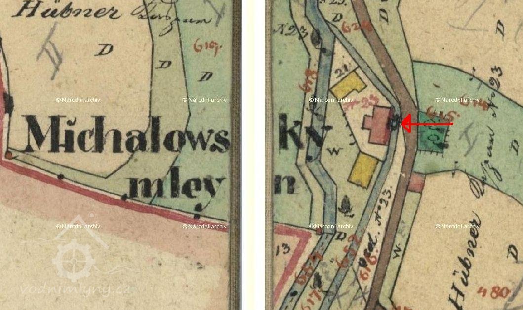 Michalovský mlýn je zobrazen na II. vojenském mapování v letech 1836-52.