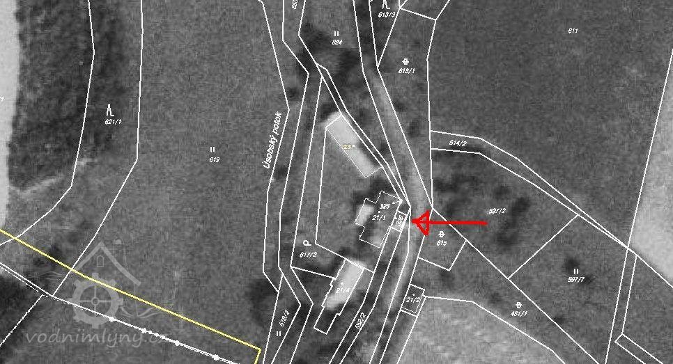 Na indikační skice z r. 1838 má čp. 23 a st.p.č. 21. Je také zobrazen na císařském otisku. Mlýn byl zděný o jednom kole na náhonu z Úsobského potoka.