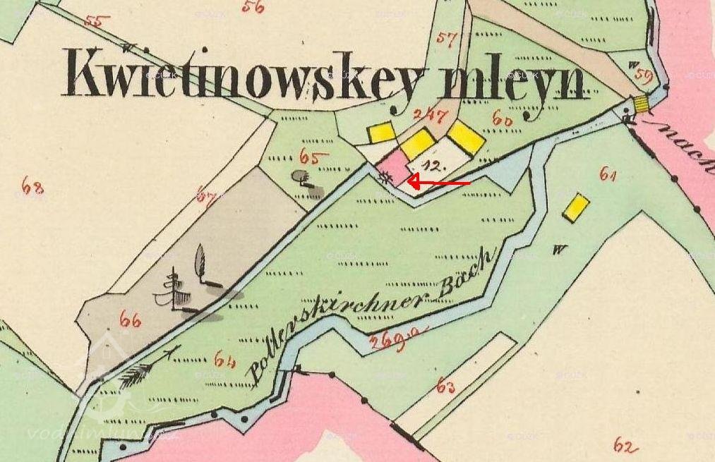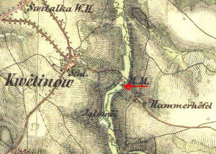 Mlýn na Úsobském potoce jihovýchodně od Květinova je zakreslen již při I. vojenském mapování v letech 1764-68.